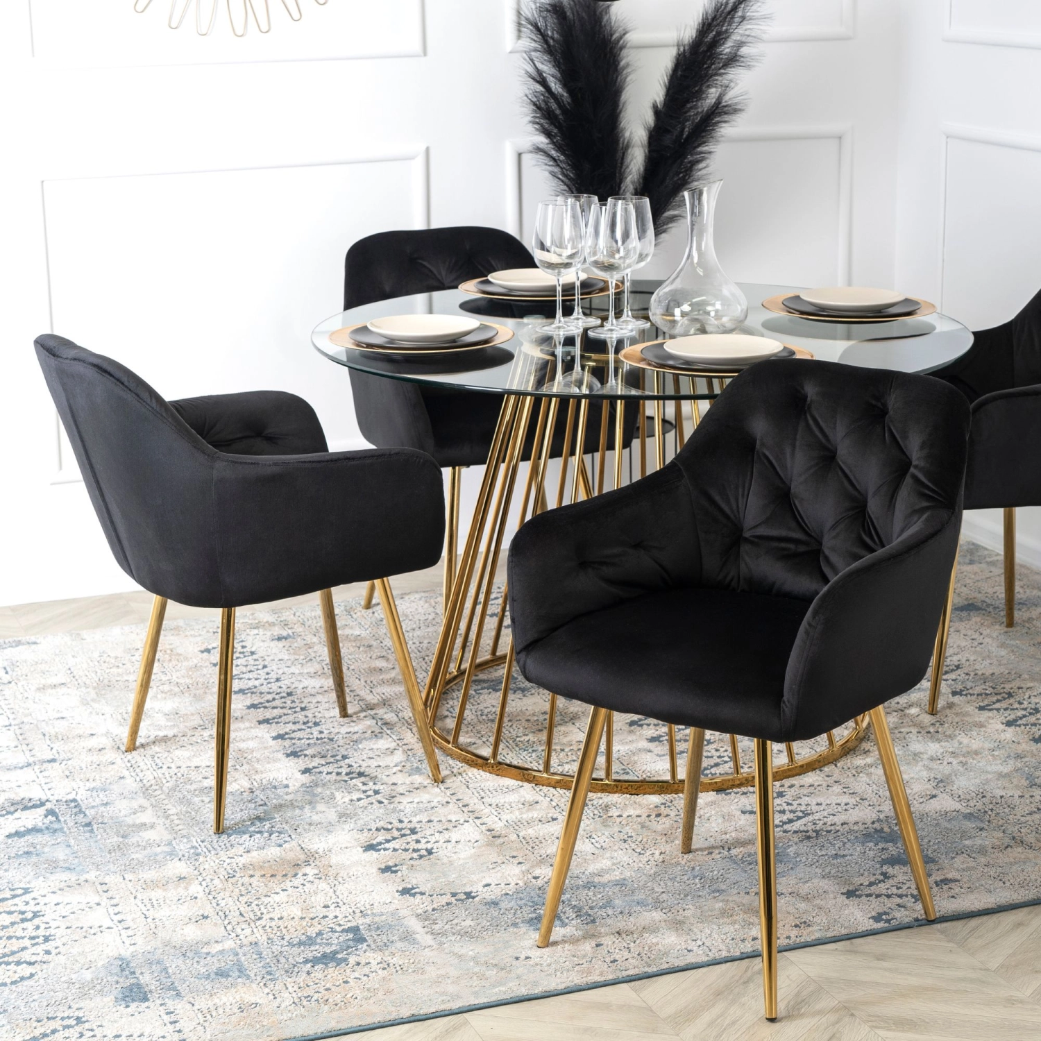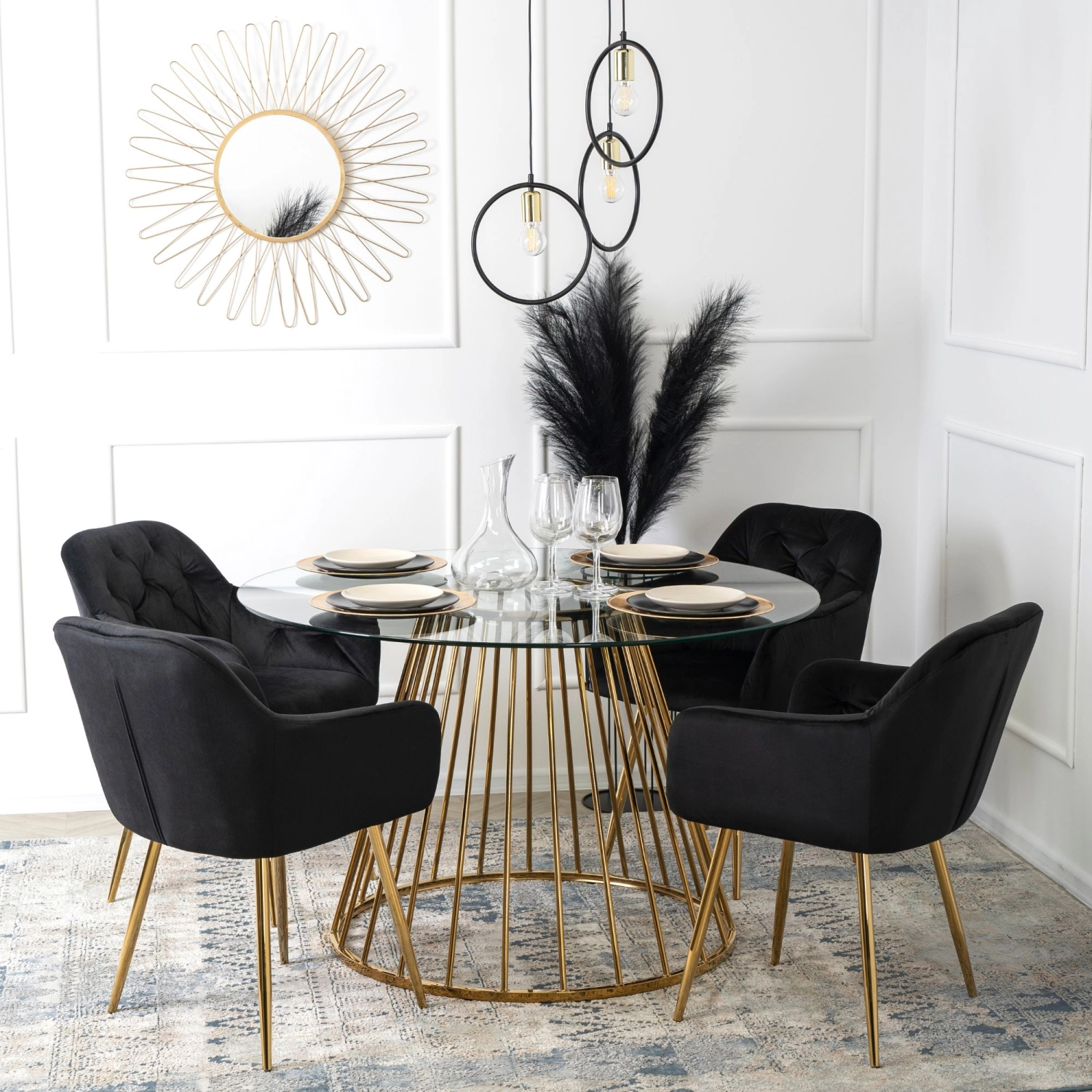 Krzesło RAYA - Synonim Komfortu i Stylu. Odkryj doskonałe połączenie funkcjonalności i nowoczesnego designu z krzesłem RAYA. Idealne zarówno do jadalni, jak i salonu, a także do eleganckich restauracji czy salonów urody. Krzesło RAYA, dzięki swojej metalowej konstrukcji w złotym kolorze, zapewnia nie tylko solidność, ale i ekskluzywny wygląd. Siedzisko i oparcie są tapicerowane miękkim, przyjemnym w dotyku welurem, co gwarantuje wygodę nawet podczas długich chwil spędzonych przy stole. Pikowane oparcie nie tylko dodaje elegancji, ale również wspiera plecy, zapewniając optymalny komfort. Praktyczne podłokietniki zwiększają wygodę użytkowania, umożliwiając relaksujące oparcie ramion.