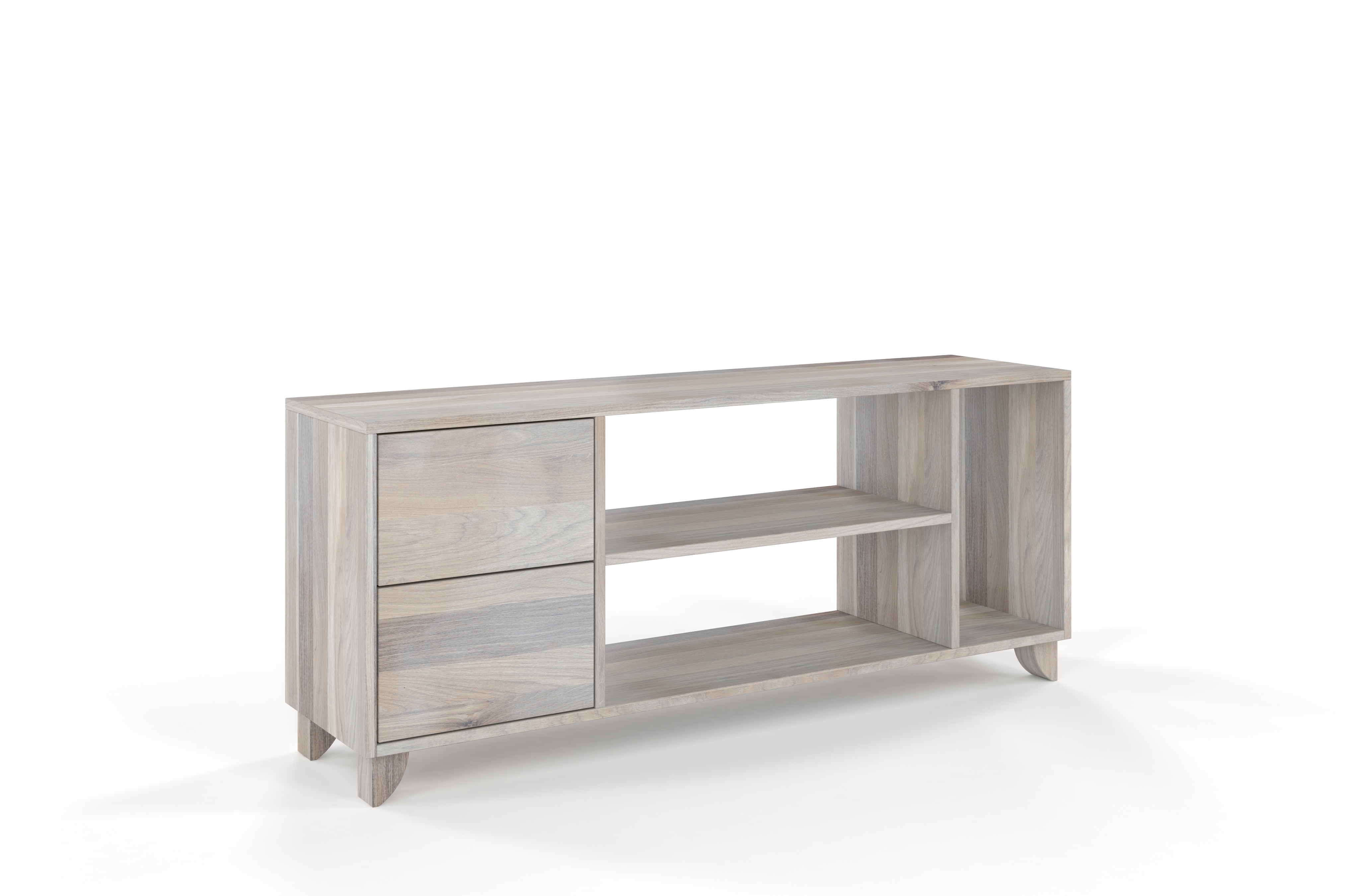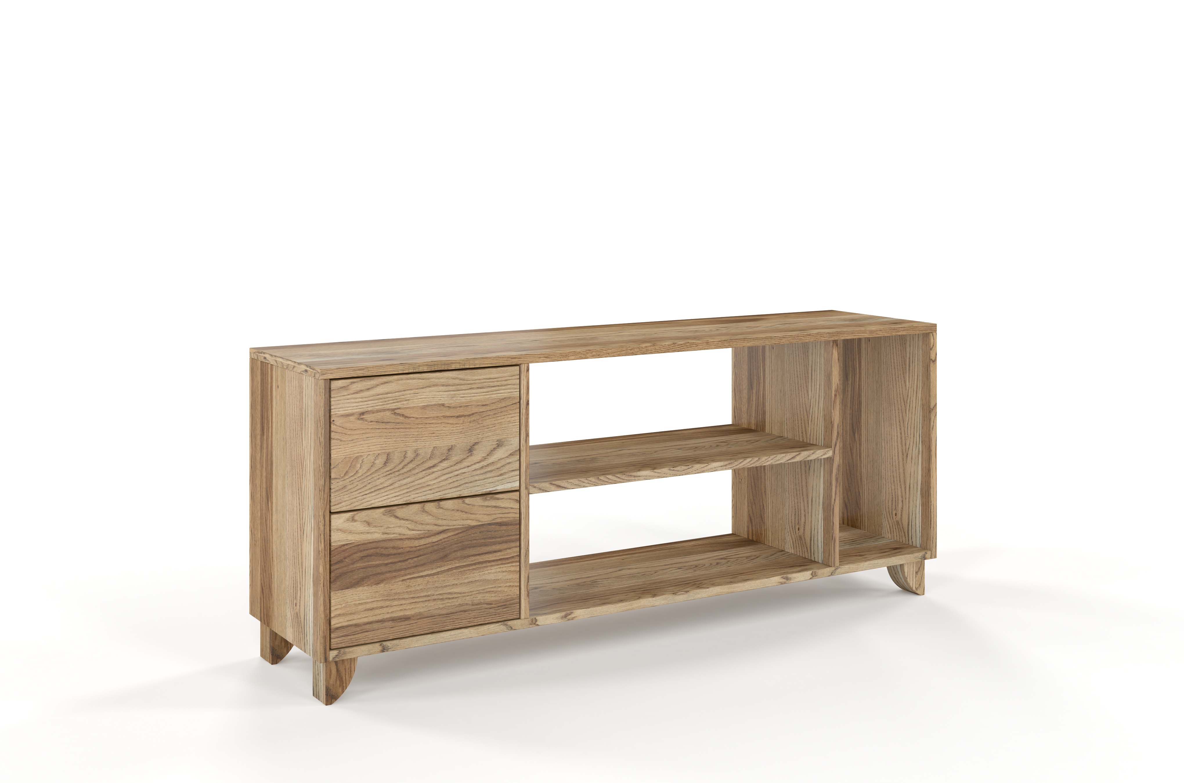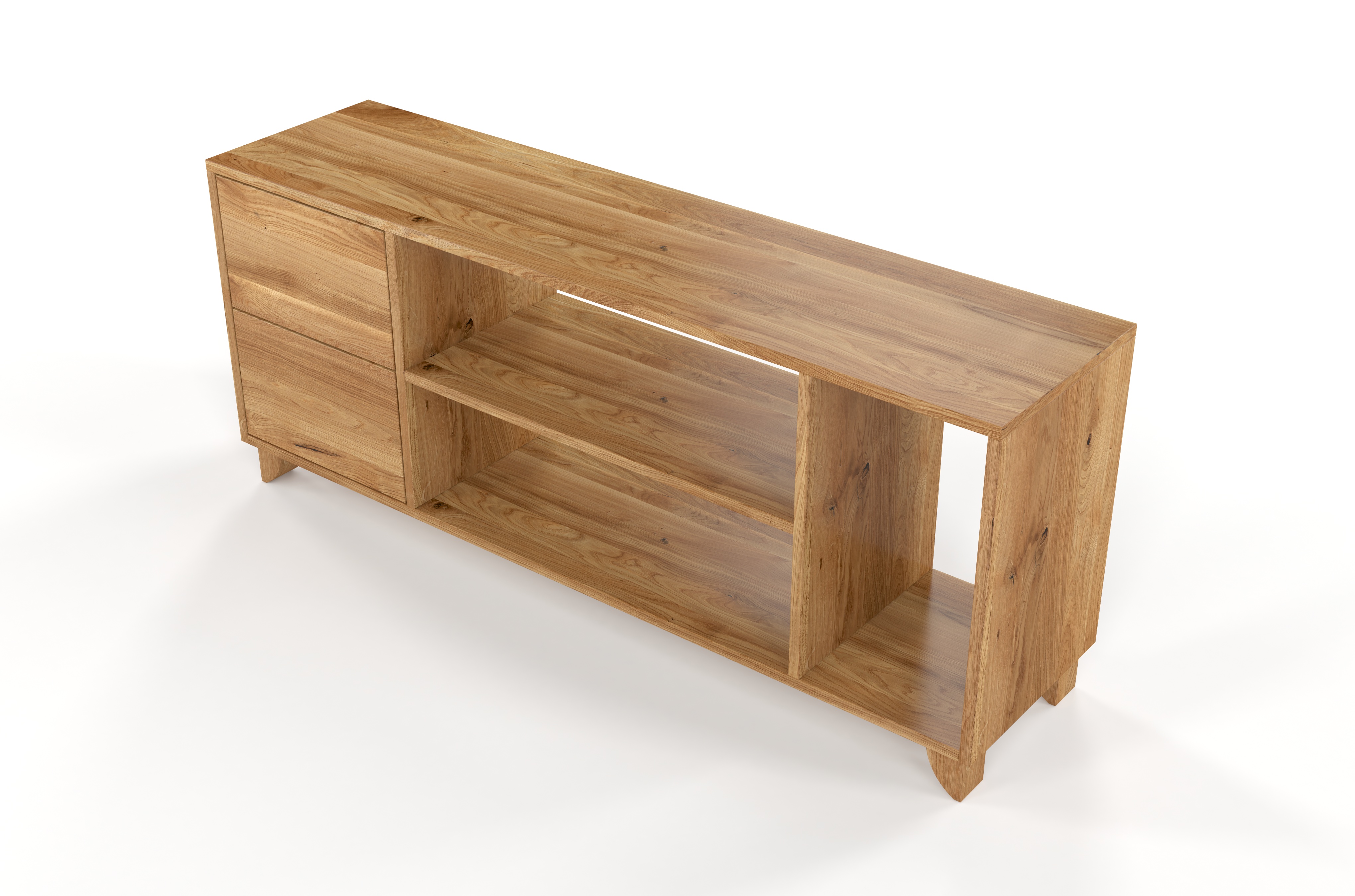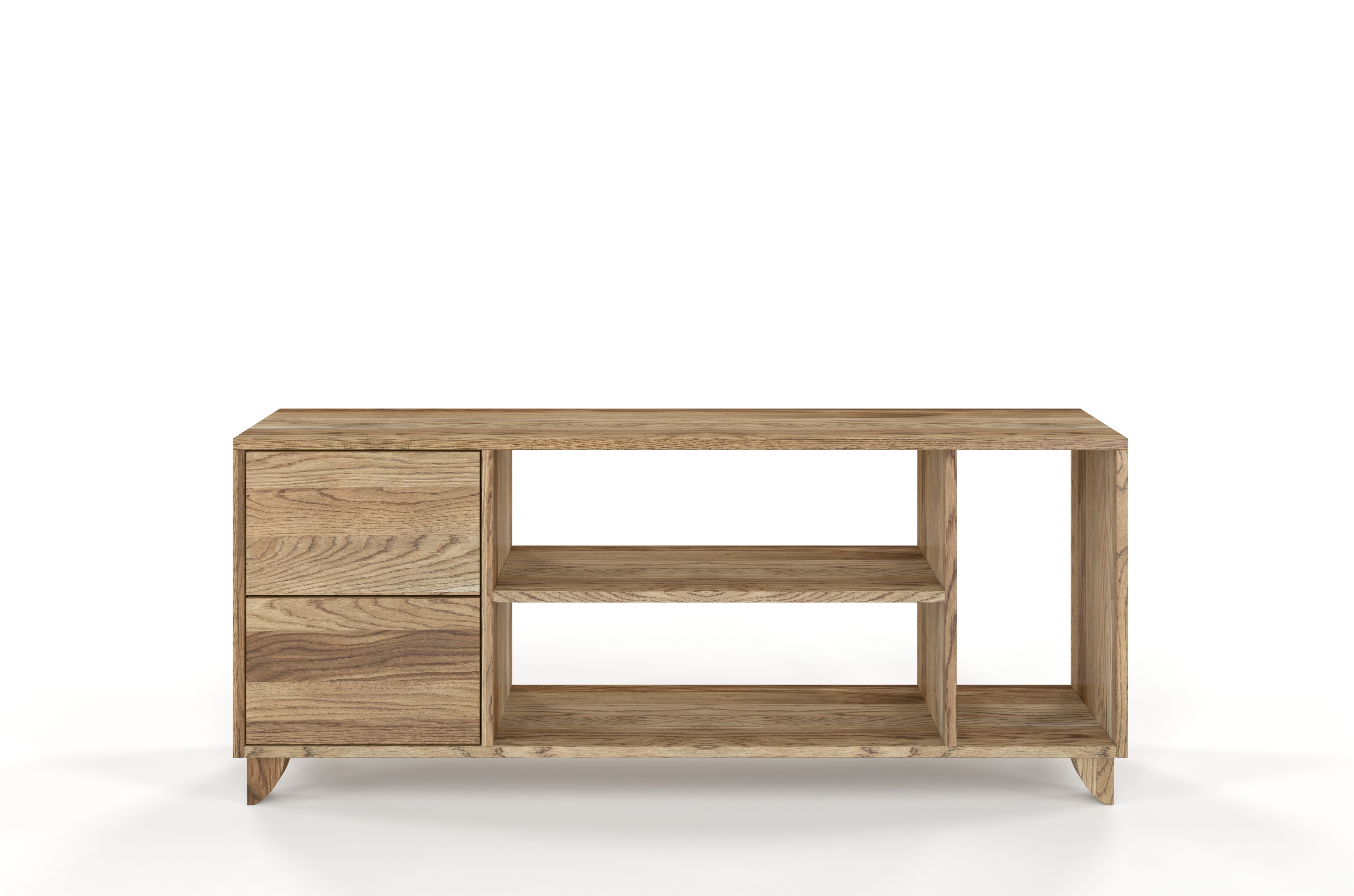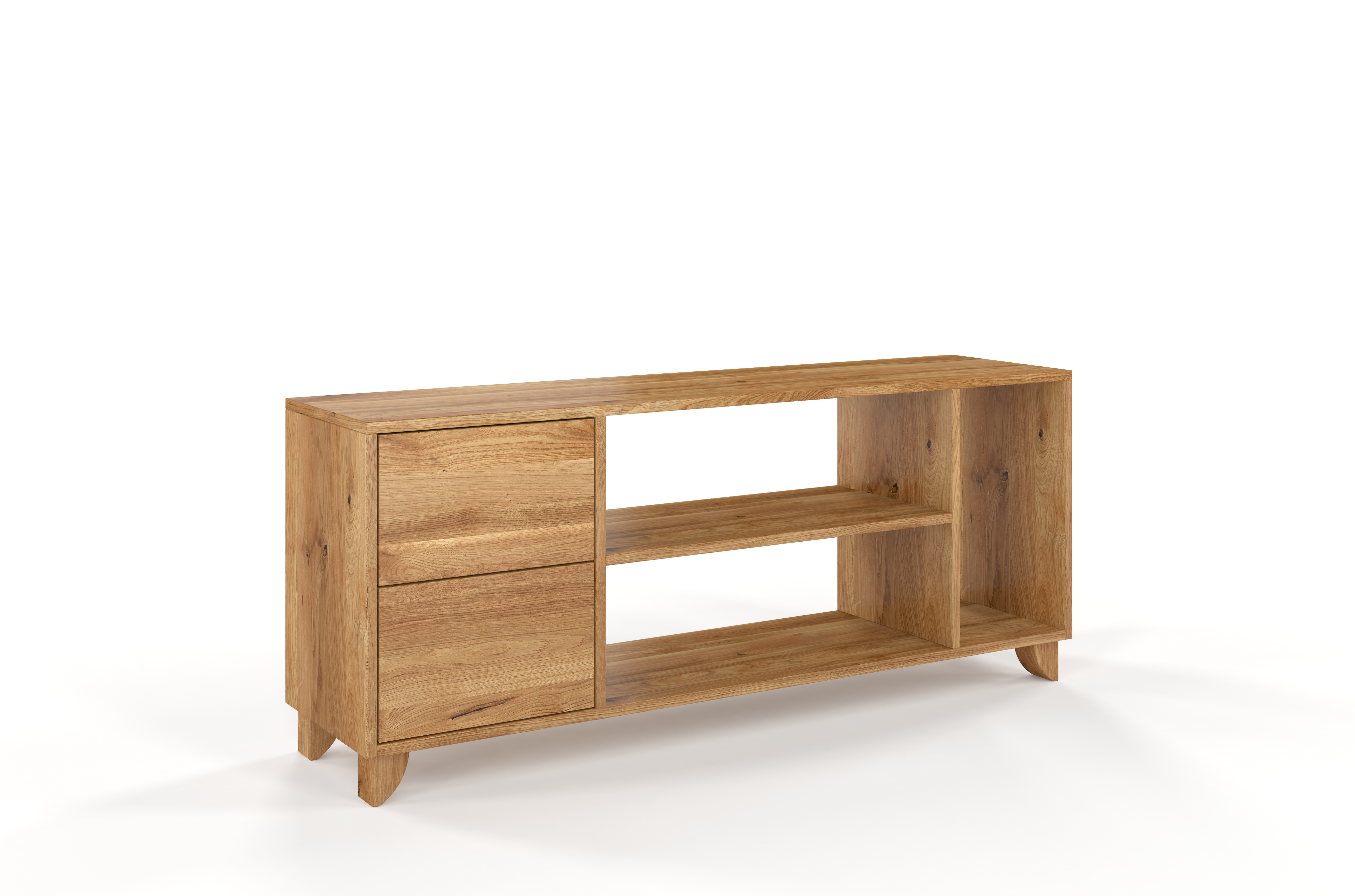 Szafka RTV VIVECA. Odkryj harmonię designu i praktyczności. Ten stylowy mebel charakteryzuje się mocną drewnianą dębową konstrukcją, która zapewnia trwałość i stabilność na lata. Minimalistyczny wygląd podkreślają szuflady bez uchwytów, otwierane za pomocą mechanizmu push-to-open, co nadaje bryle nowoczesnej lekkości. Szafka oferuje przemyślany układ półek oraz pojemne szuflady, idealne do przechowywania sprzętu multimedialnego, książek czy akcesoriów. Co więcej, niezabudowane plecy półek ułatwiają rozmieszczenie przewodów, pomagając utrzymać porządek i estetykę stanowiska RTV. Zainwestuj w mebel, który łączy solidność wykonania z prostymi rozwiązaniami, dopasowanymi do współczesnych potrzeb.