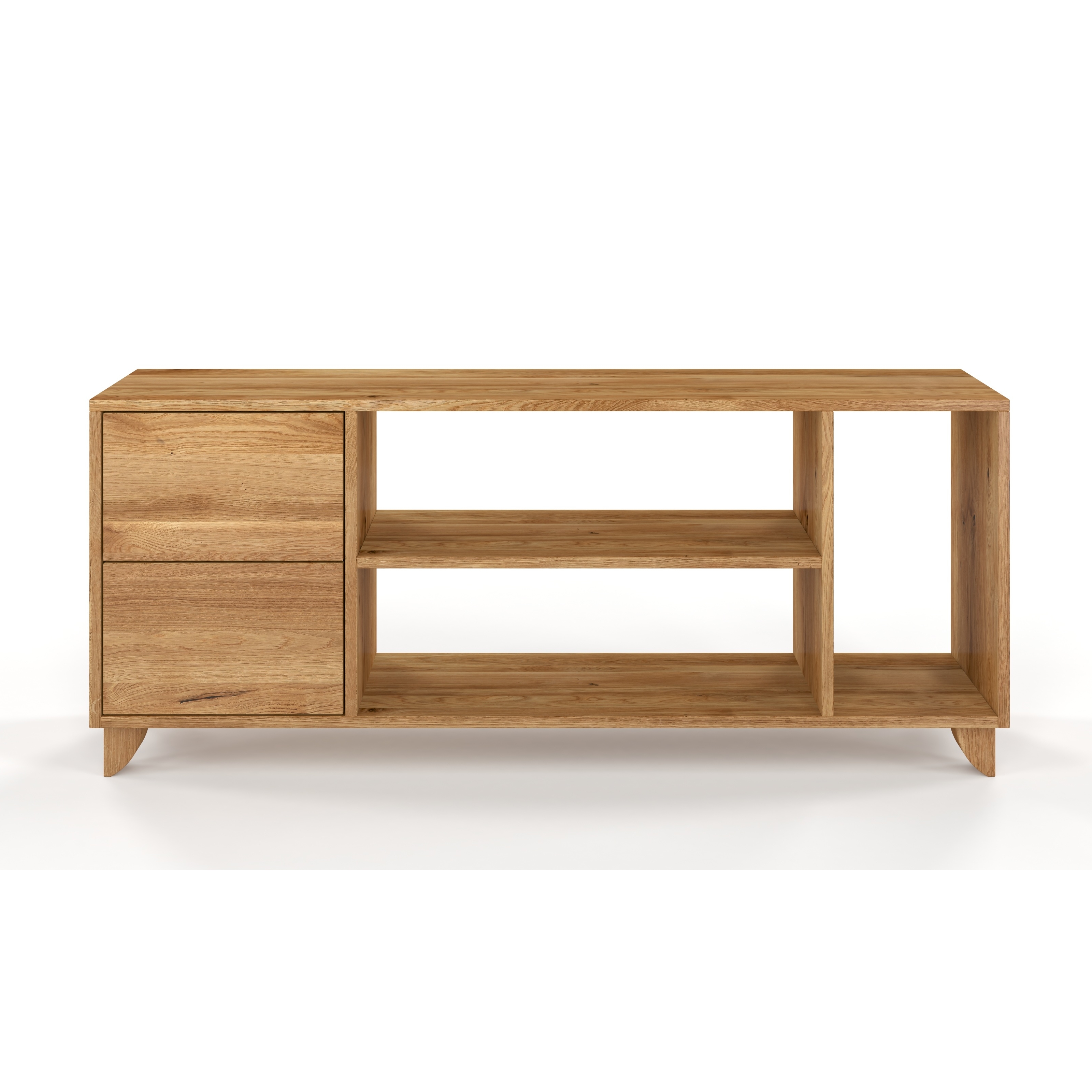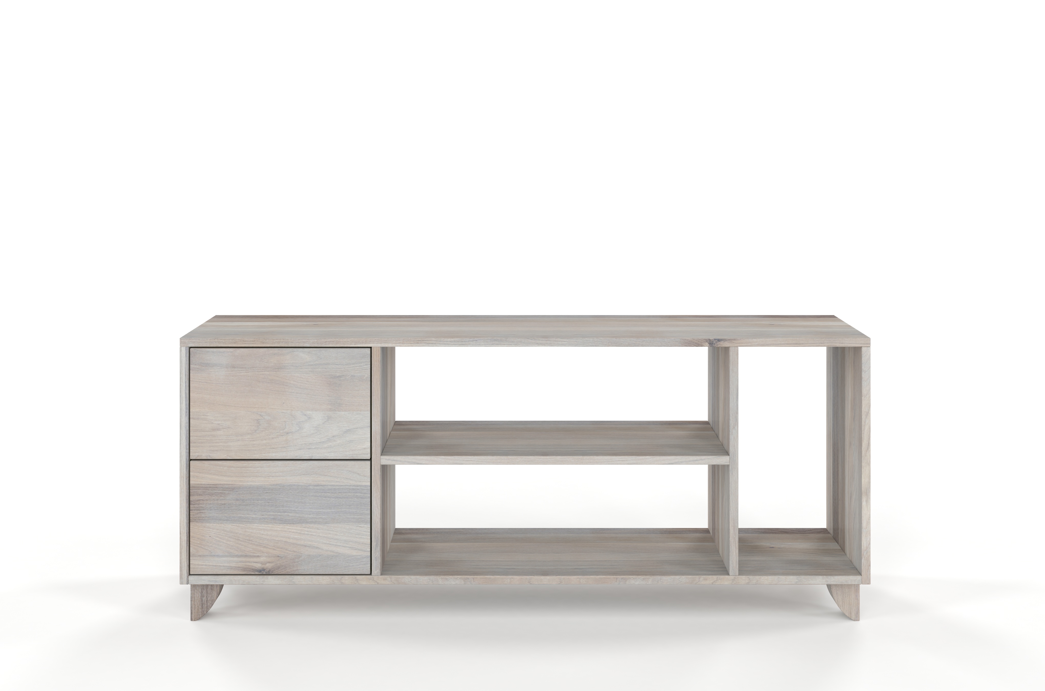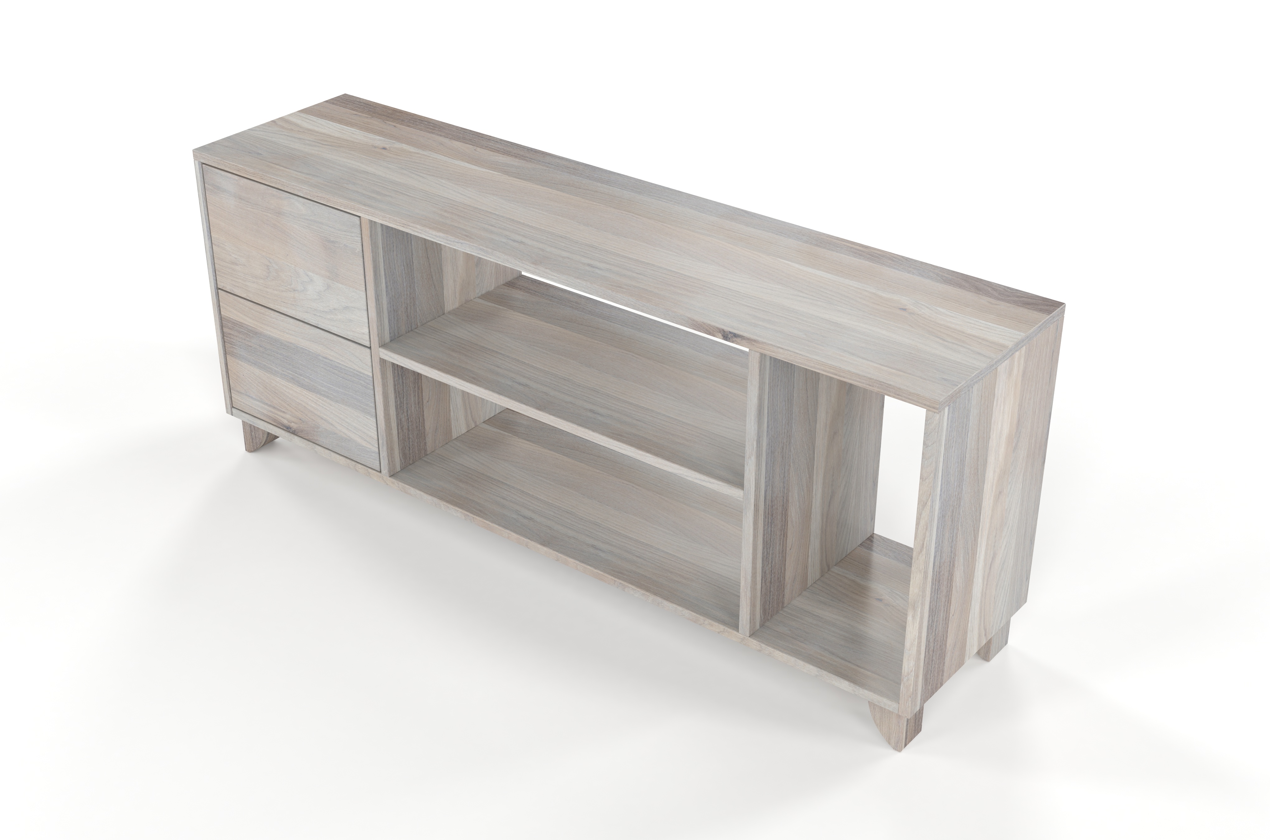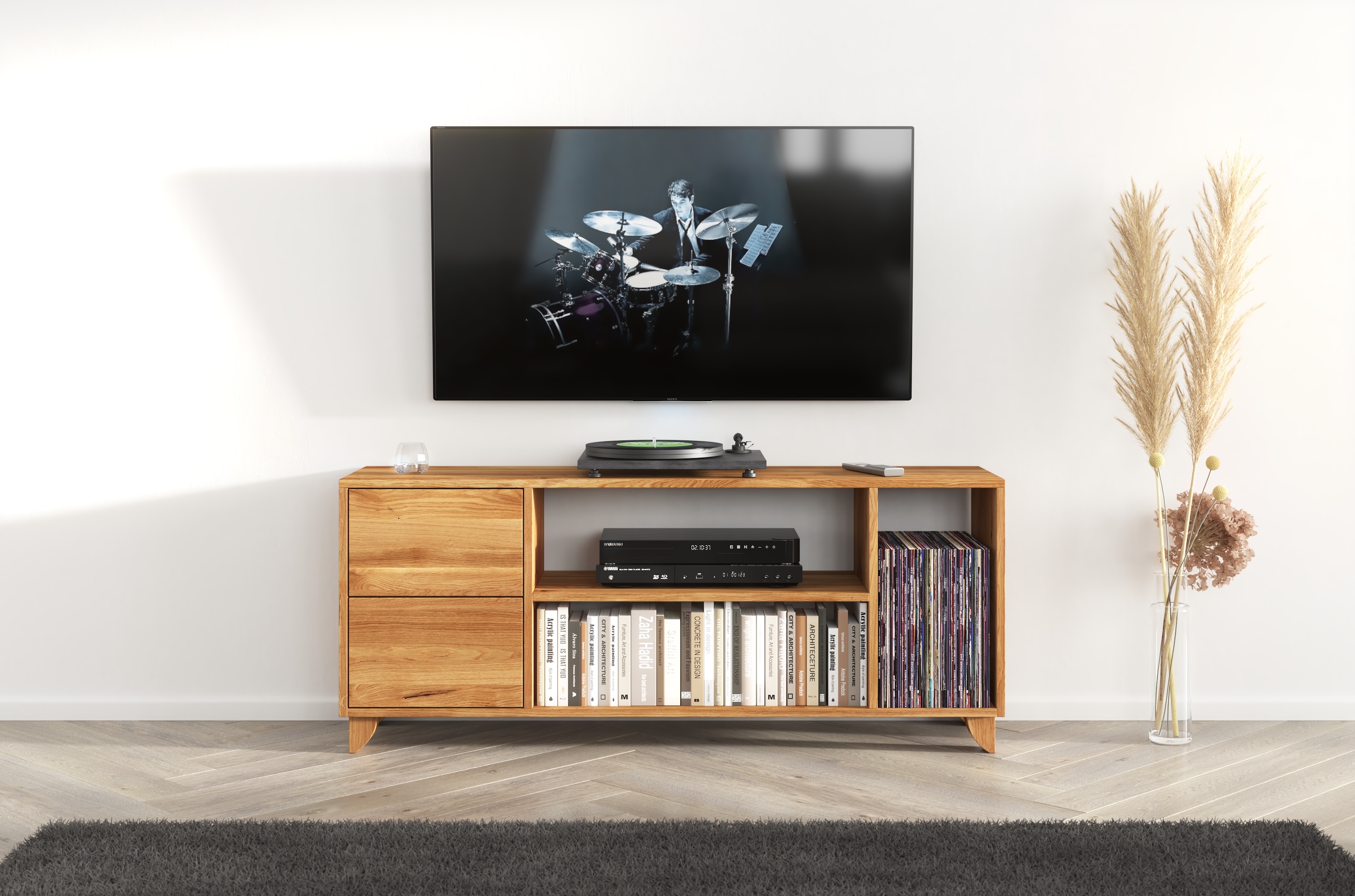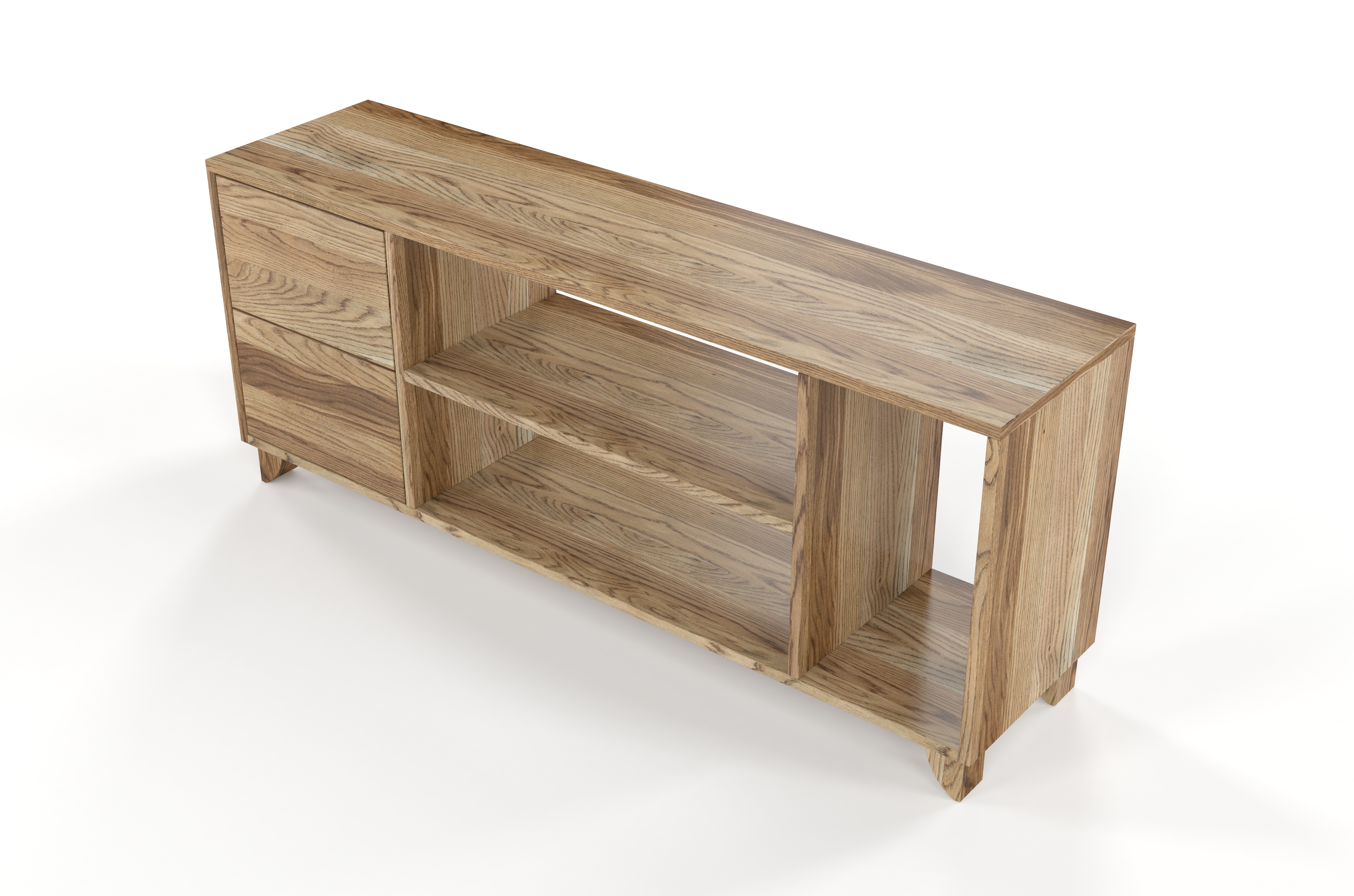 Szafka RTV VIVECA. Odkryj harmonię designu i praktyczności. Ten stylowy mebel charakteryzuje się mocną drewnianą dębową konstrukcją, która zapewnia trwałość i stabilność na lata. Minimalistyczny wygląd podkreślają szuflady bez uchwytów, otwierane za pomocą mechanizmu push-to-open, co nadaje bryle nowoczesnej lekkości. Szafka oferuje przemyślany układ półek oraz pojemne szuflady, idealne do przechowywania sprzętu multimedialnego, książek czy akcesoriów. Co więcej, niezabudowane plecy półek ułatwiają rozmieszczenie przewodów, pomagając utrzymać porządek i estetykę stanowiska RTV. Zainwestuj w mebel, który łączy solidność wykonania z prostymi rozwiązaniami, dopasowanymi do współczesnych potrzeb.