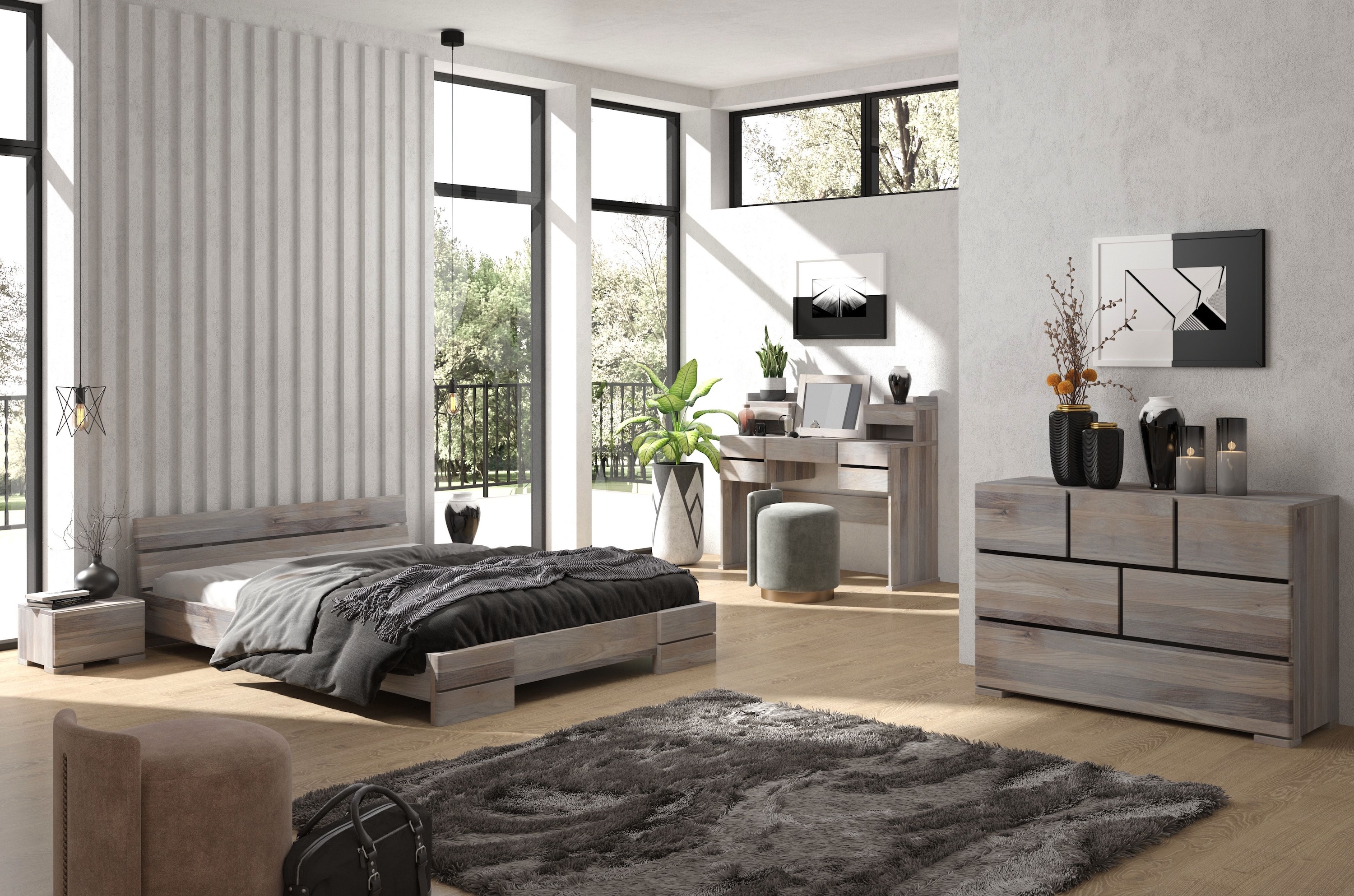 Nowoczesny dodatek sypialni: Szafka Sandemo to dodatek do łóżka o tej samej nazwie. Szuflada z gładkim frontem, bez uchwytów zapewnia miejsce na różne drobiazgi. Mebel zajmuje niewiele miejsca, świetnie pasuje do pozostałych elementów sypialni. W szufladzie zastosowaliśmy nowoczesne prowadnice z funkcją cichego domykania. Tego typu rozwiązanie opiera się na zasadzie automatycznego spowolnienia szuflady w ostatnim momencie jej domykania.