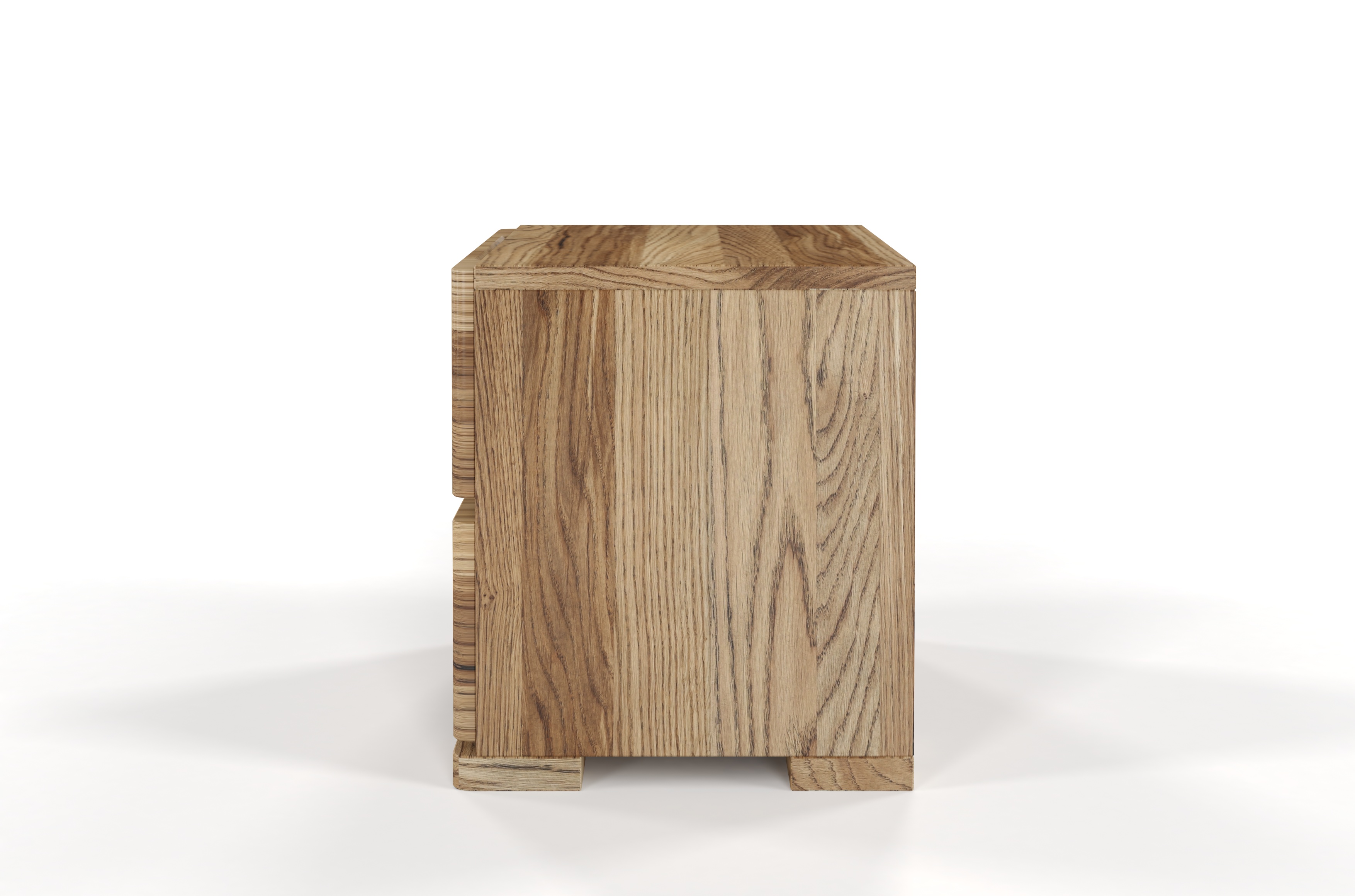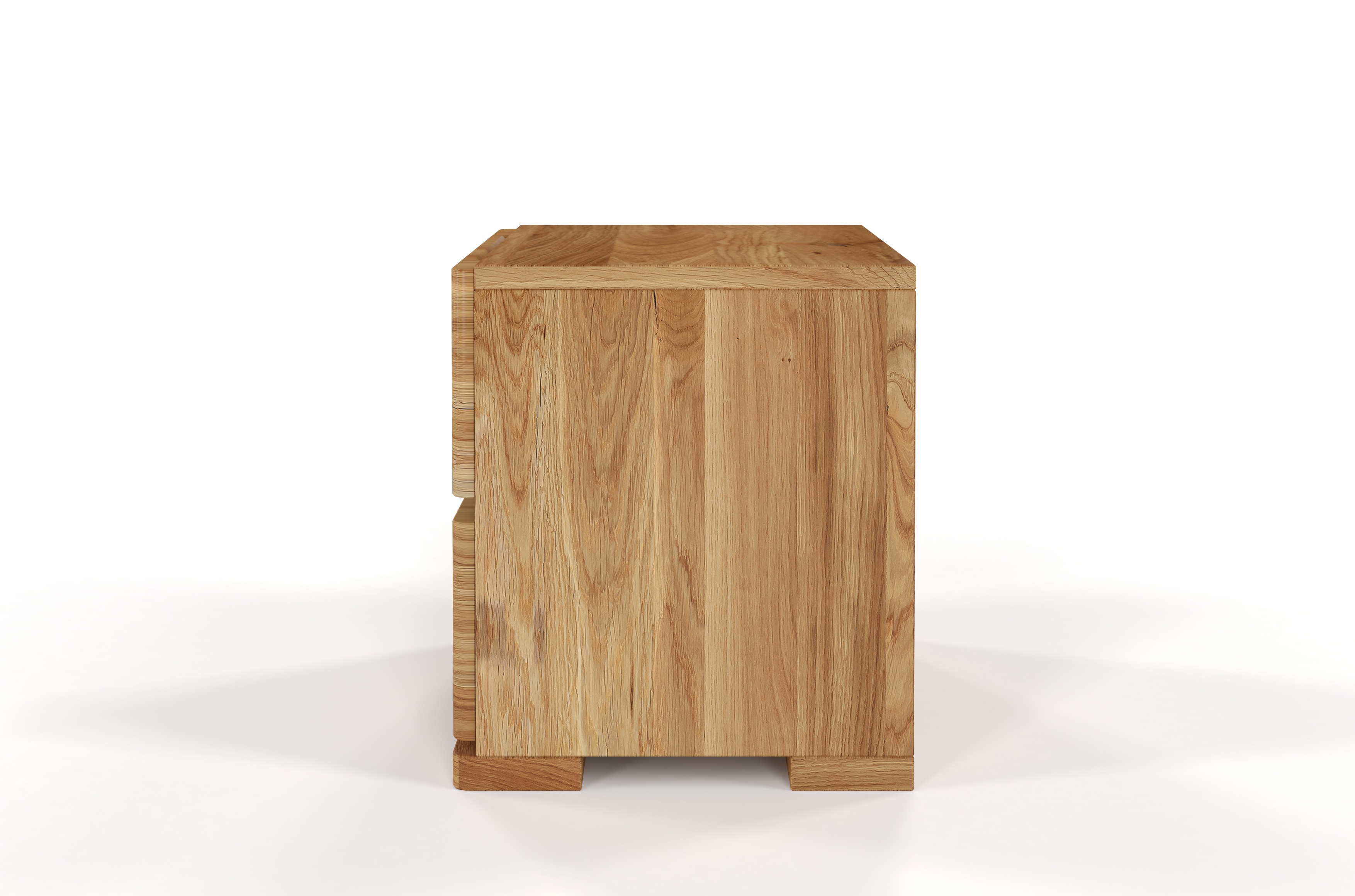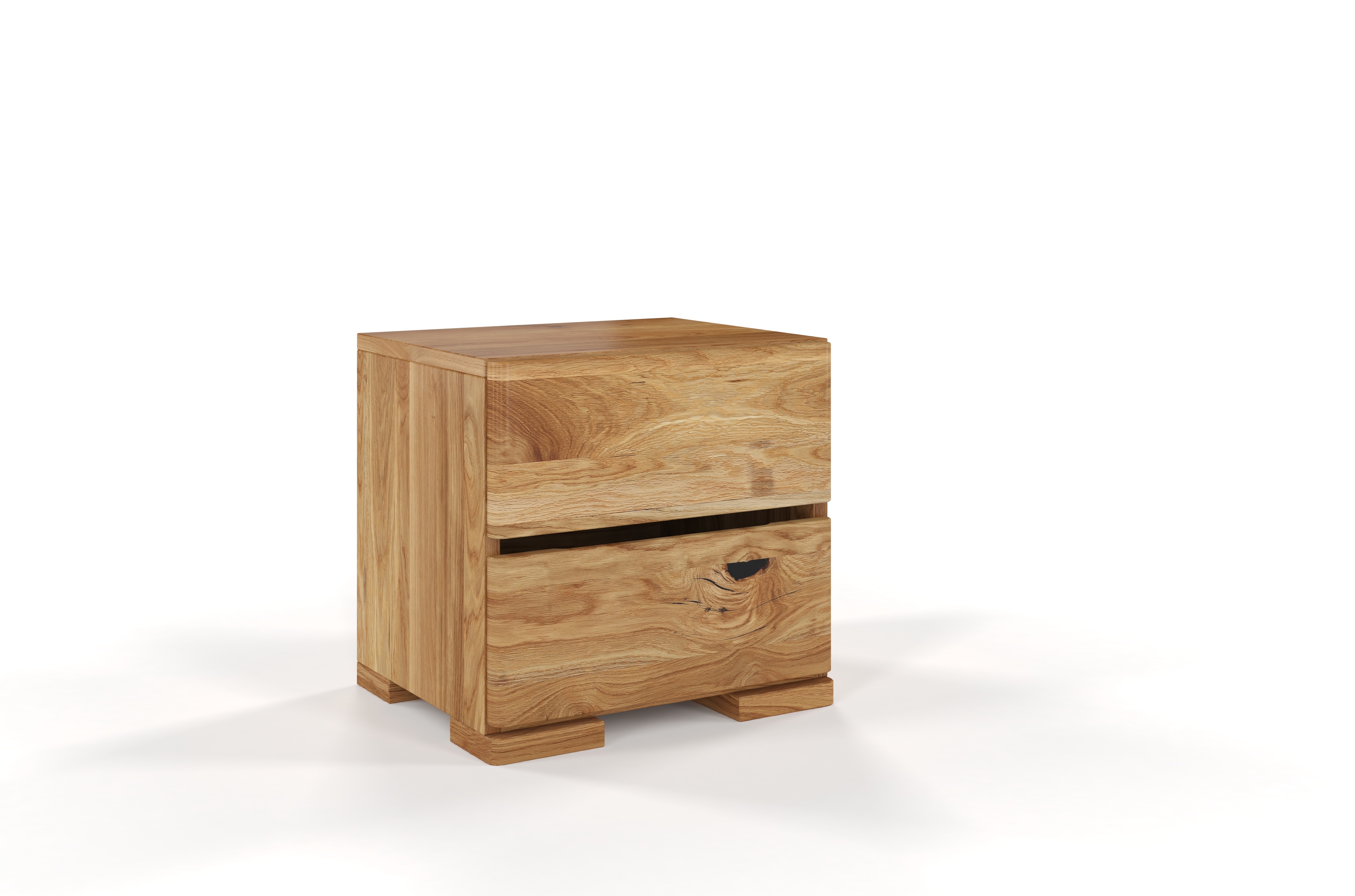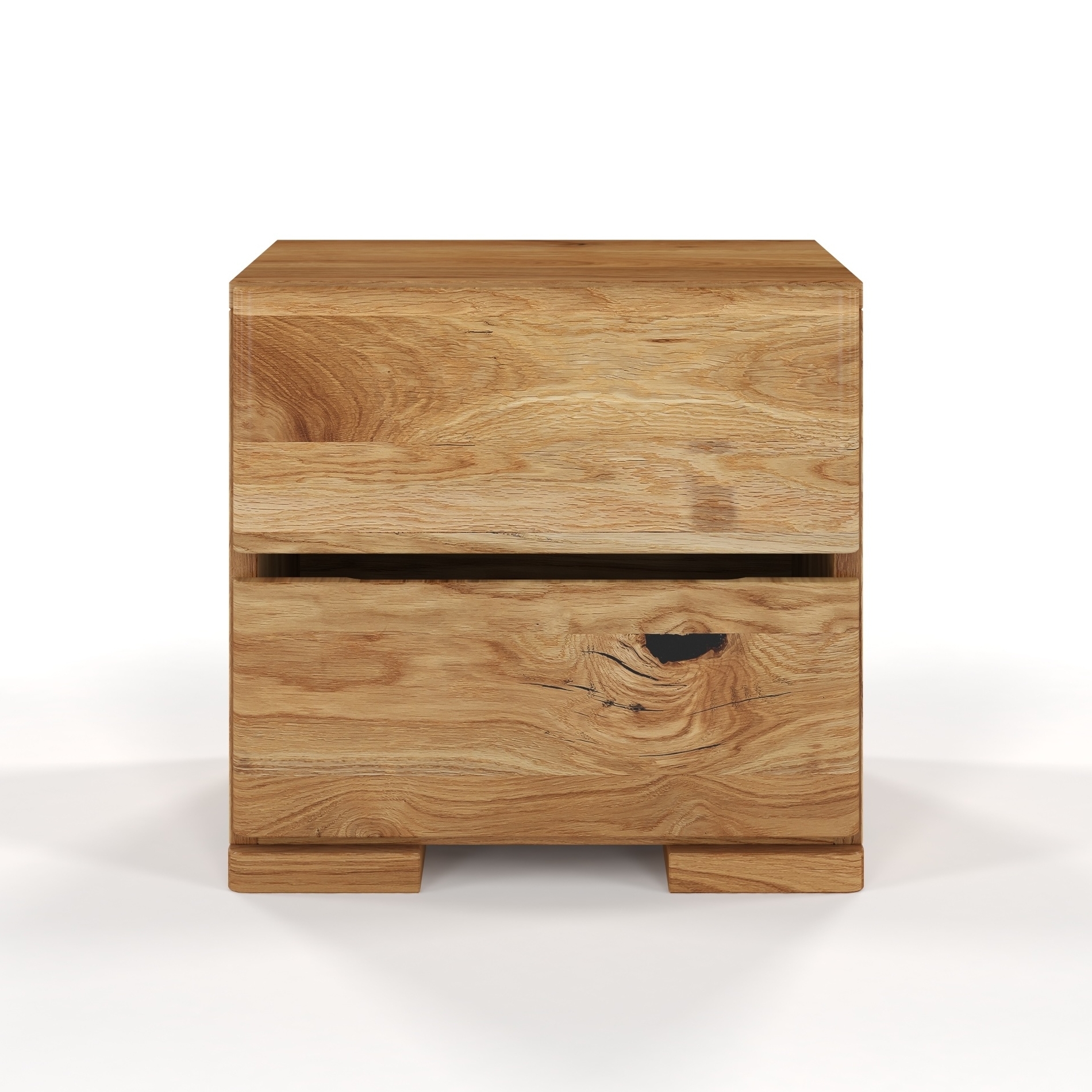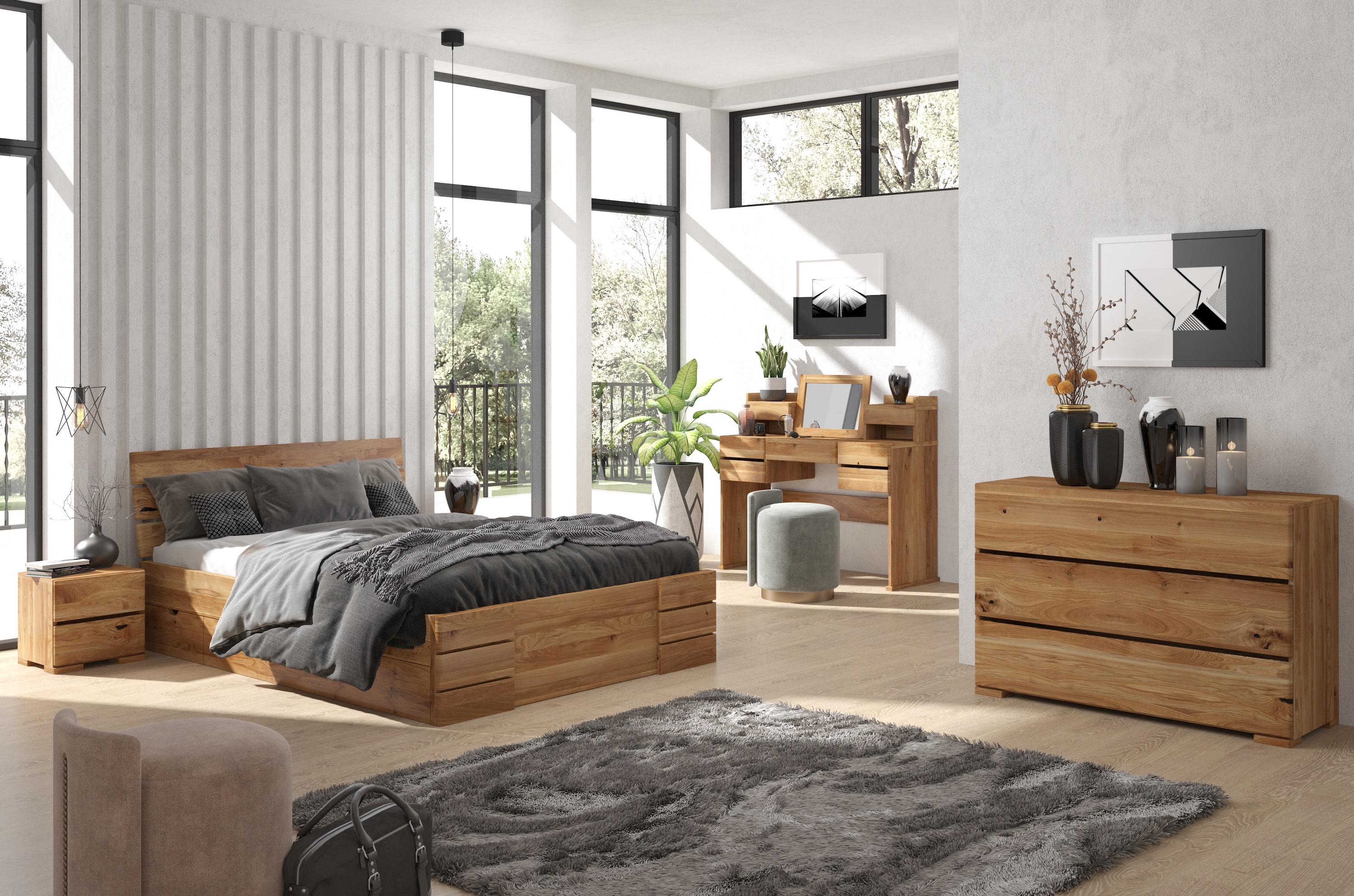 Nowoczesny dodatek sypialni: Szafka Sandemo High to dodatek do łóżka o tej samej nazwie. Dwie szuflady pomieszczą wiele przedmiotów potrzebnych w sypialni. Stabilna szafka z gładkim frontem, bez uchwytów to prosta, nowoczesna forma, która w połączeniu z naturalnym drewnem odmieni wystrój każdego wnętrza. W szufladzie zastosowaliśmy nowoczesne prowadnice z funkcją cichego domykania. Tego typu rozwiązanie opiera się na zasadzie automatycznego spowolnienia szuflady w ostatnim momencie jej domykania.